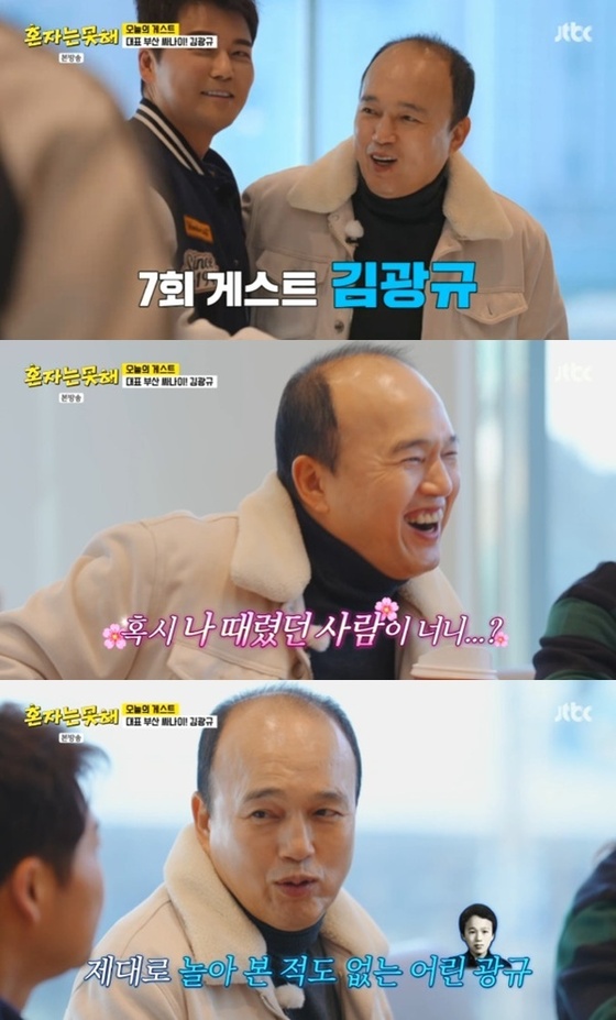 이날 김광규는 부산 출신으로 부산 맛집을 알려달라는 요청이 많다며 "나는 33년 동안 부산에 살면서 한 번도 외식해본 적이 없다"라고 고백해 모두를 놀라게 했다. 그는 "육성회비도 못 내고 손바닥 맞던 시절이라서"라며 부산 맛집 투어를 의뢰했다.