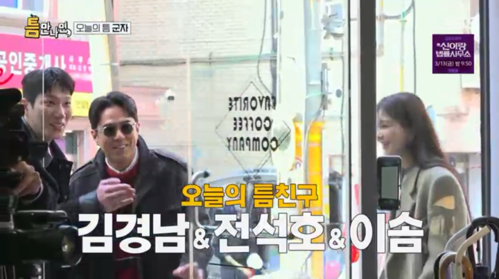 10일 방송된 SBS ‘틈만 나면,’에서는 배우 이솜, 김경남, 전석호가 ‘틈 친구’로 출연해 2MC 유재석, 유연석과 함께 군자동에서 시민들에게 행운을 선물하는 모습이 그려졌다.
