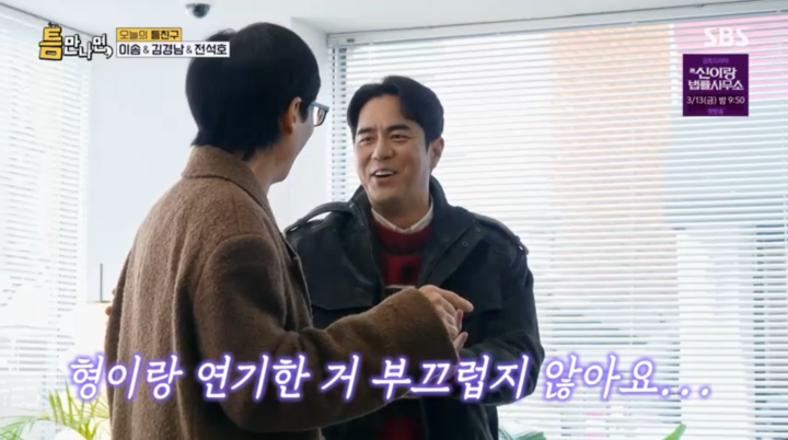 전석호는 “형과 연기한 거 전혀 부끄럽지 않다”며 수습에 나섰지만, 유재석은 “그 당시 내가 주연으로 화려하게 출연했는데!”라며 핀잔을 멈추지 않았다. 유연석 역시 “우리 드라마 홍보 좀 제대로 해보려 했는데 이게 뭐냐”며 친구의 실수를 타박했고, 김경남마저 “정말 최악이다”라고 거들어 전석호를 진땀 빼게 만들었다.
