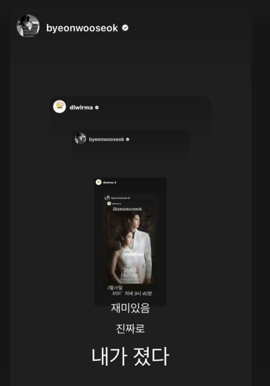 먼저 변우석이 MBC 새 금토드라마 ‘21세기 대군부인’ 커플 포스터를 스토리에 올리며 “재미있음”이라고 남기자, 이를 본 아이유가 해당 스토리를 다시 공유했다. 이에 변우석은 다시 한 번 이를 리포스트하며 “재미있음 진짜로”라는 글을 덧붙였고, 아이유 역시 다시 이를 공유하며 상황은 마치 ‘SNS 대결’처럼 이어졌다 결국 아이유는 “내가 졌다”라는 짧은 멘트를 남기며 웃음을 안겼다. 두 사람이 서로의 스토리를 이어 올리는 모습에 팬들은 “벌써 케미 터진다”, “드라마 시작도 전에 꽁냥거린다”, “이 조합 기대된다” 등의 반응을 보이고 있다.