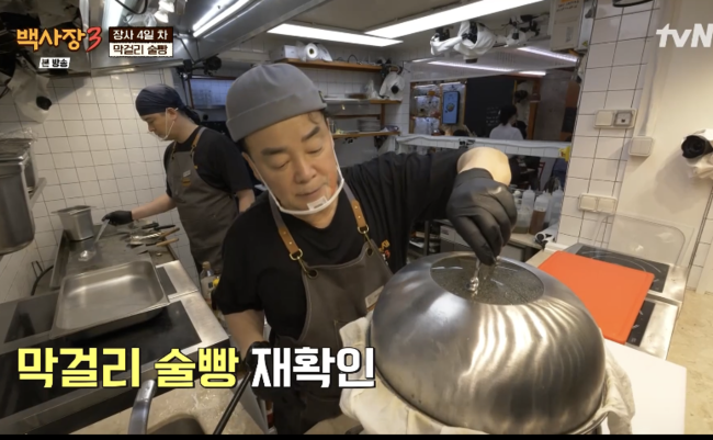 10일 방송된 tvN예능 '백사장' 시즌3에서는 장사 4일 차를 맞아 막걸리 술빵 메뉴를 선보이는 모습이 그려졌다.