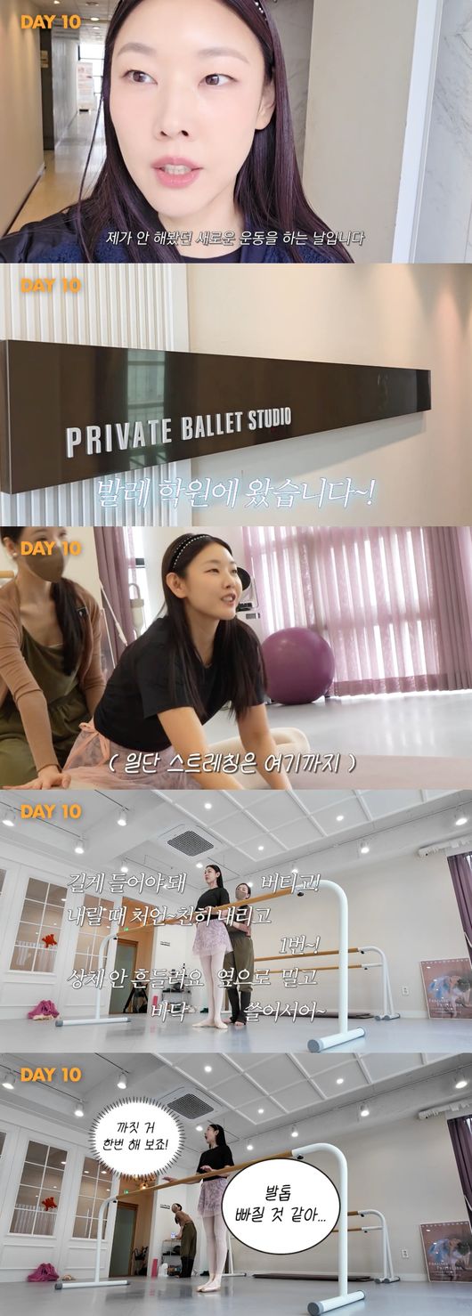 2주에 걸쳐 한혜진은 공복에 5km 이상 러닝을 달리는가 하면, 매일같이 2시간 30분 이상을 헬스장에서 보냈다. 여기에 그는 2주차가 되자 새로운 운동을 추가했다. 바로 발레였다.