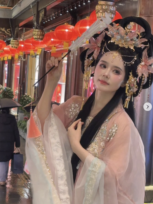 특히 화려한 장식에도 불구하고 또렷한 이목구비가 돋보이며 “인형 같다”, “왕홍 메이크업도 완벽 소화한다”는 반응이 이어졌다. 평소 단아한 이미지로 알려진 한가인이 이번에는 이국적인 스타일링까지 자연스럽게 소화하며 또 한 번 미모를 입증한 셈이다.