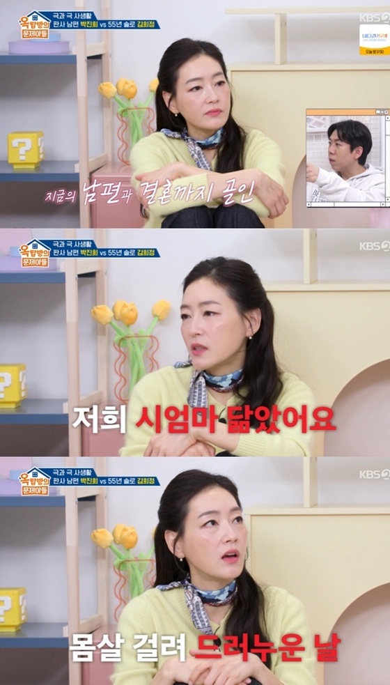 지난 12일 오후 방송된 KBS 2TV 예능 프로그램 '옥탑방의 문제아들'(이하 '옥문아')에서는 드라마 '붉은 진주'의 주역 박진희와 김희정이 퀴즈에 도전했다.