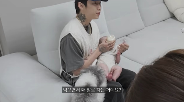 박재범은 직접 분유를 먹였고, 칭얼거리는 하이를 보며 "진짜 무슨 말을 하고있는지 궁금하다. 알고 싶다"고 호기심을 드러냈다. 그는 "엄청 잘 먹는다. 이거 다 먹냐"고 물었고, PD는 "밤새 자서 배가 엄청 고플거다"라고 말했다. 이에 박재범은 "좋겠다. 난 이거 촬영하러 2시간밖에 못잤는데. 당신은 통잠자고"라고 투덜댔고, PD는 "이 시기땐 먹고 자고 싸고밖에 없다"고 설명했다.