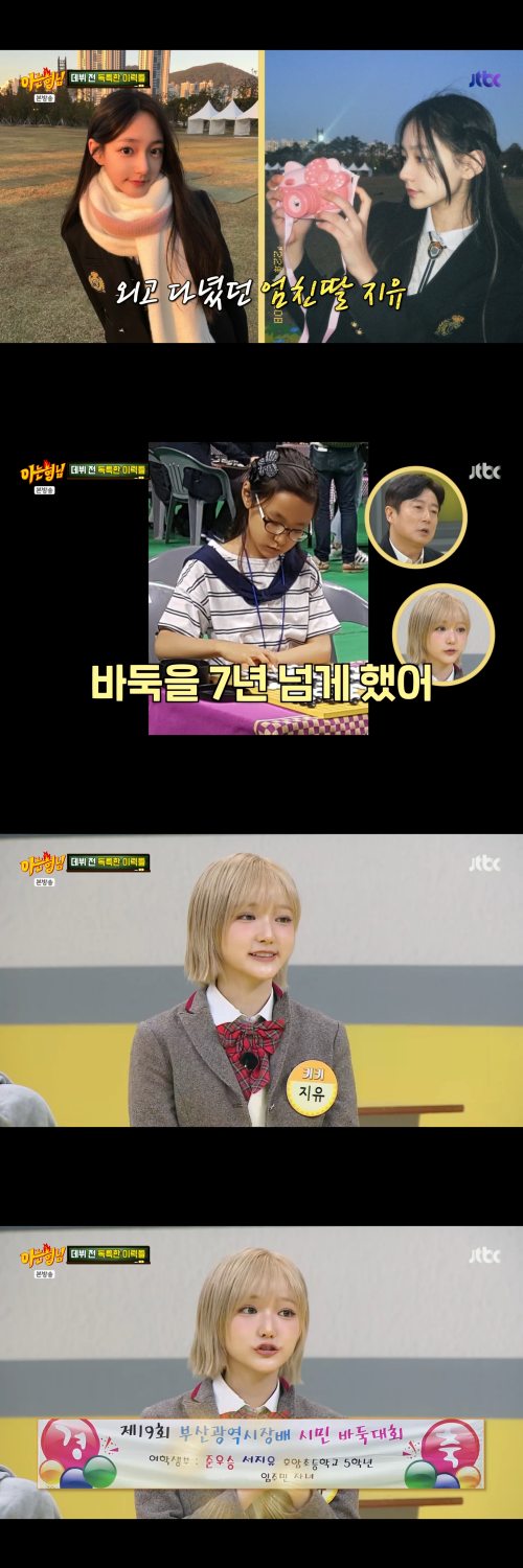 또한 그는 “바둑을 7년 넘게 했다”며 남다른 취미도 밝혔다. 지유는 “시장배 대회에 나가서 준우승을 한 적도 있다”고 덧붙여 출연진들을 놀라게 했다.