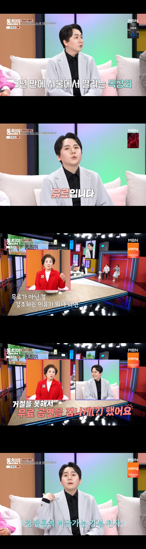 유인경은 “거절을 못하는 성격이라 무료 공연을 엄청 했다”고 말했고, 임형주 역시 이를 인정했다. 그는 “아마 김장훈 형님 다음으로 대한민국에서 무료 공연을 많이 했을 것”이라고 말해 웃음을 자아냈다.
