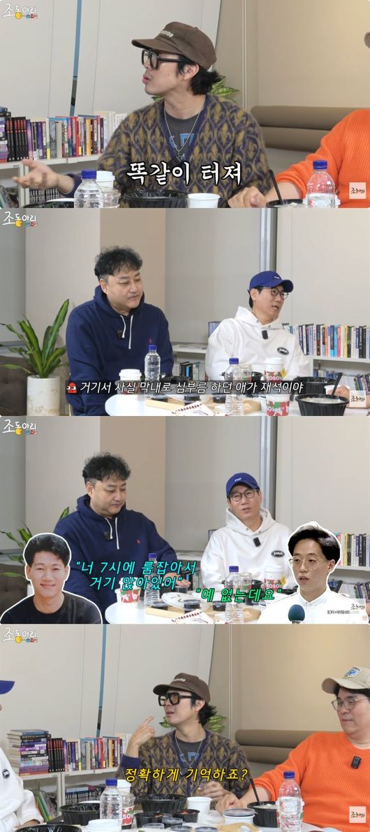 이에 지석진은 과거를 추억하며 “거기서 사실 막내로 심부름하고 그랬던 애가 재석이다. ‘너 일 없지? 너 7시에 가서 룸 잡아서 거기 앉아 있어’”라고 말해 눈길을 끌었다.