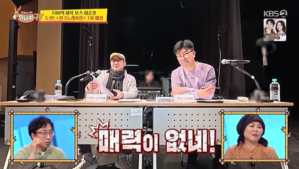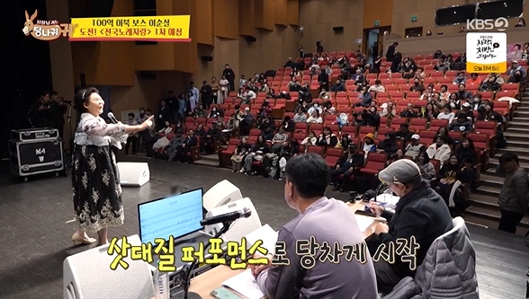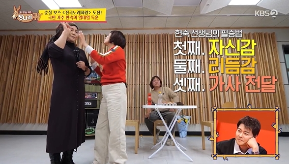 15일 KBS 2TV '사장님 귀는 당나귀 귀'(사당귀)에서는 '전국노래자랑' 예선전 도전에 앞서 현숙의 특훈을 받는 이순실의 모습이 전파를 탔다.