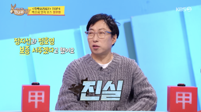 [OSEN=김채연 기자] 방송인 박명수가 정호영 셰프에 보증을 서줄 수 있다고 약속했다.