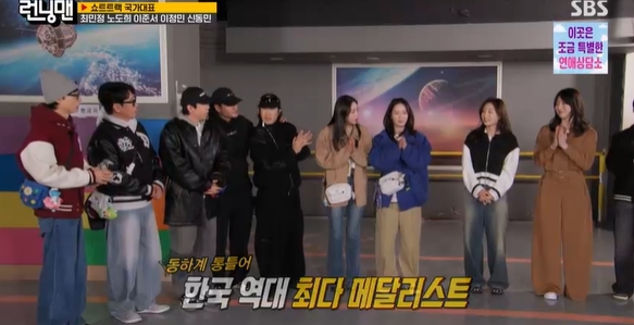 본격적인 레이스에 앞서 이날의 특별 게스트인 밀라노 올림픽의 주역들이 등장했다. 쇼트트랙 국가대표 최민정, 노도희, 이준서, 이정민, 신동민 선수가 모습을 드러내자 '런닝맨' 멤버들은 술렁이며 환호했다. 밀라노 영웅들의 등장에 지예은은 "우와 멋있다"라며 탄성을 내질렀고, 송지효 역시 "멋있어, 잘 봤다"라며 따뜻한 인사를 건넸다. 특히 대한민국 쇼트트랙의 간판 최민정은 "쉽지 않아서 (메달을) 두 개밖에 못 땄다"라며 겸손한 태도를 보여 모두를 놀라게 했다. 총 7개의 메달로 올림픽 최다 메달 기록을 보유한 최민정은 이번 대회가 마지막이었다며 '올림픽 은퇴'를 공식 선언해 멤버들과 제작진의 뜨거운 박수를 받았다.