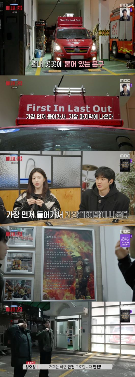 그런 소방관들의 머리 위로 곳곳에 쓰인 문구가 눈길을 모았다. "First In Last Out(퍼스트 인 라스트 아웃)". 바로 어느 현장이든 소방관이 가장 먼저 들어가서 가장 늦게 나오며 한 명이라도 구조할 수 있도록 책임감을 되새기는 구호였다. 정해인은 "퍼스트 인, 라스트 아웃. 가장 먼저 들어가서 마지막에 나온다"라고 되새기며 소방관들의 책임감을 느꼈다.