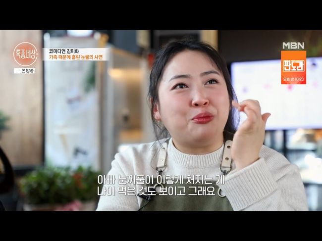 19일 방영한 MBN ‘특종세상’에서는 김미화 가족이 등장했다. 김미화와 남편 윤승호는 딸 윤혜정이 운영하는 카페에 가서 화기애애한 시간을 가졌다. 윤승호는 김미화가 재혼한 남편으로, 아이들은 전 남편과의 사이에서 낳은 아이들이다. 그러나 딸과 아버지는 애틋한 관게였다.