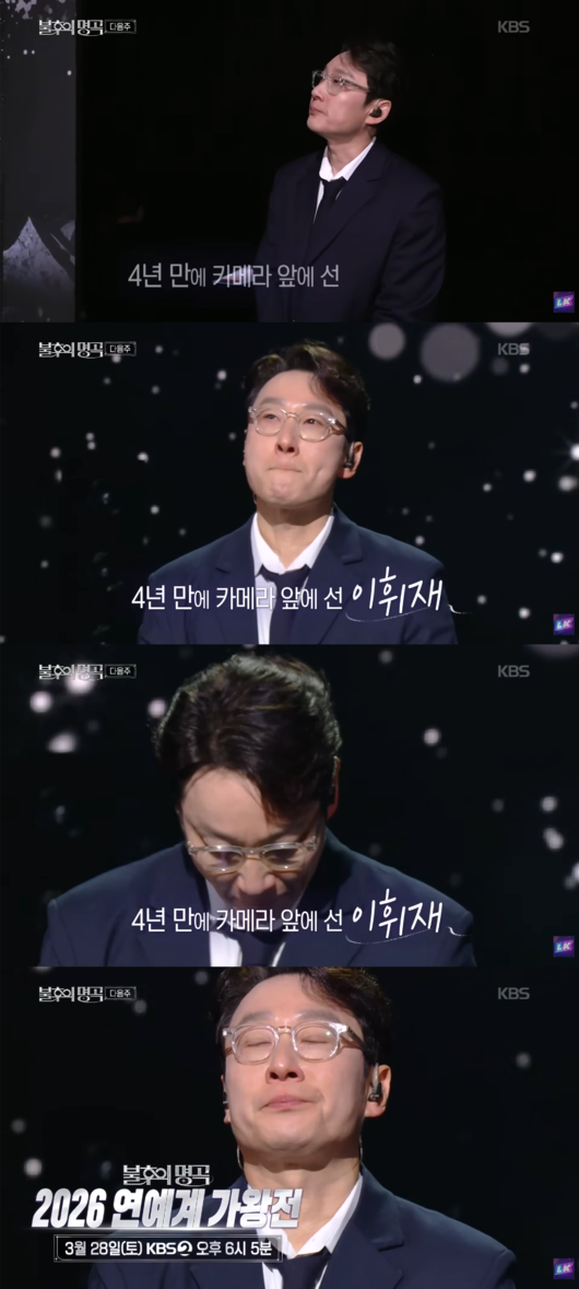 지난 21일 방송된 KBS 2TV ‘불후의 명곡’ 말미에는 다음주 예고편이 공개되며 이휘재의 모습이 전파를 탔다.