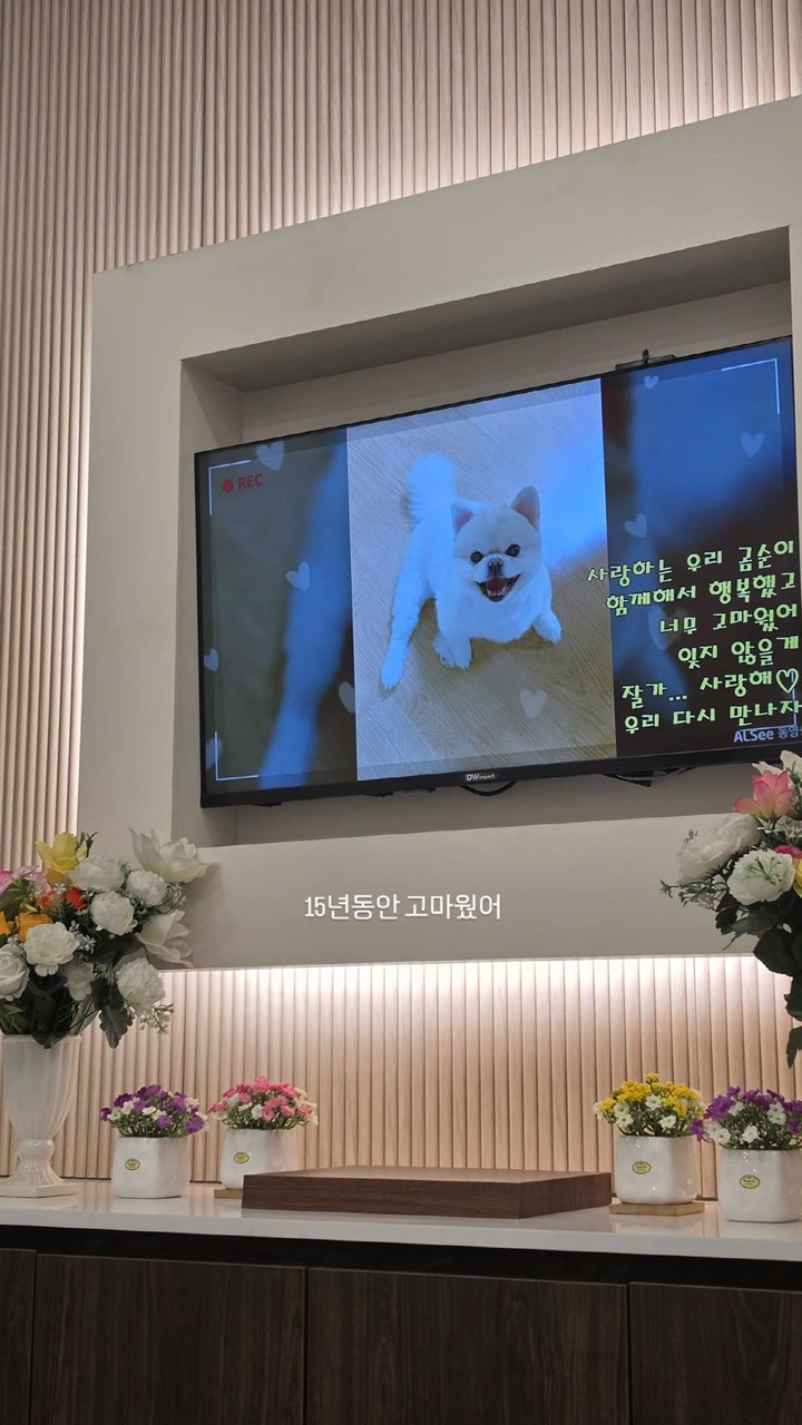 풍자는 지난 22일 자신의 계정을 통해 "15년 동안 고마웠어"라는 짧은 글과 함께 사진 한 장을 공개했다. 사진 속에는 풍자의 반려견 '곰순이'의 장례식 장면이 담겨 있었으며 그 옆에는 "사랑하는 우리 곰순이, 함께라서 행복했고 정말 고마웠어. 절대 잊지 않을게. 잘 가 사랑해. 다시 만나자"라는 애틋한 메시지가 적혀 있어 보는 이들의 마음을 먹먹하게 했다.
