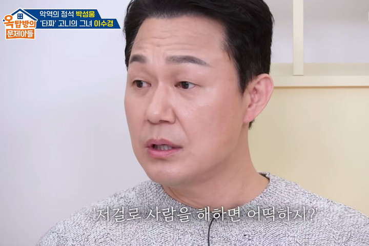 이날 박성웅은 악역 연기 후유증이 있다며 "11년 전 '살인 의뢰'라는 영화에서 부녀자를 죽이는 연기를 한 적이 있다"고 말문을 열었다. 그는 "그때 전라도에서 인물을 죽이는 신을 촬영했다. 어느 순간 정신을 차려보니 숙소에서 제가 화면 송출이 안 되는 TV 앞에 멍하니 앉아 있는 거다"라고 회상했다.