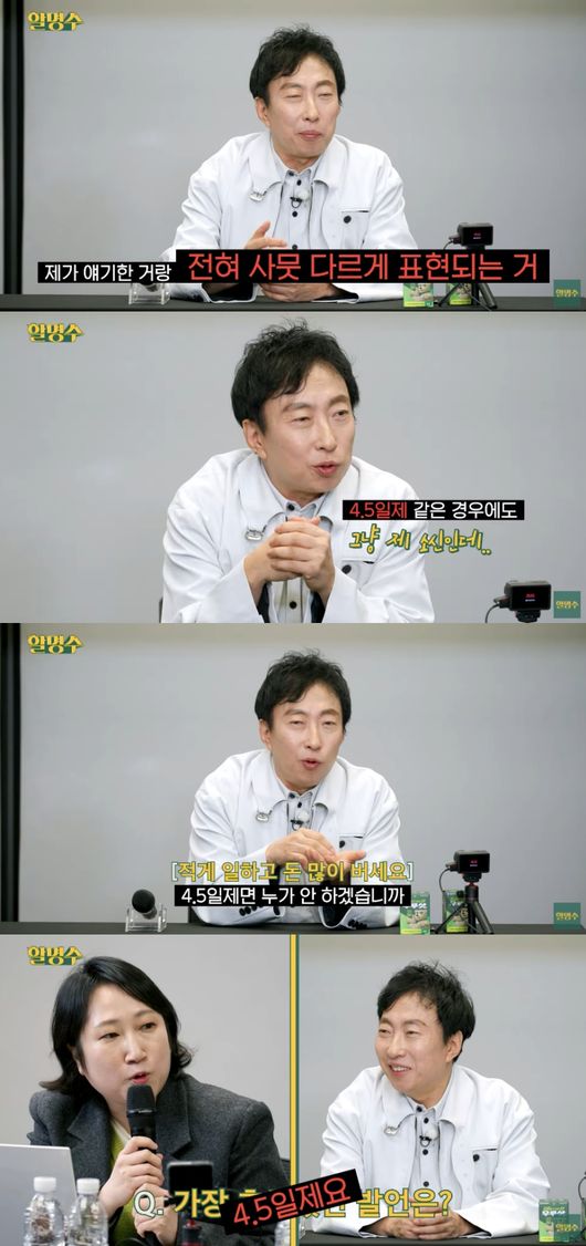 그러면서 “월급이 보존이 되고 4.5일제면 누가 안하겠냐. 근데 월급이 보존이 되겠냐는 거다”라고 덧붙였다.