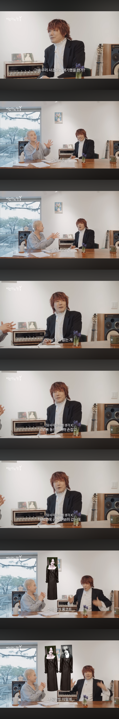 이소라는 “오빠 항상 치마 입고 다니고 다리가 길어서 모델 같은 느낌이었다”고 회상했고, 김장훈 역시 당시를 떠올렸다.