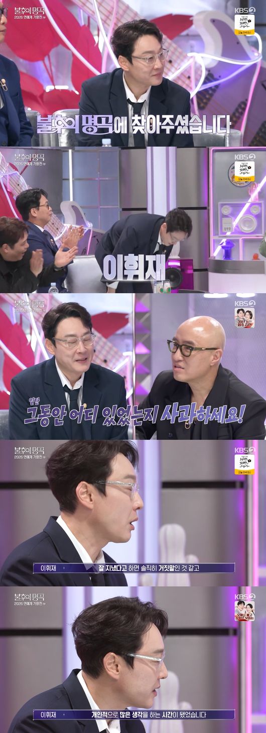 MC들은 “4년 만에 돌아왔다”며 이휘재를 반겼다. 홍석천은 “그동안 어디 있었는지 사과해라”라고 너스레를 떨었고, 이휘재는 “죄송하다”고 말문을 열었다.