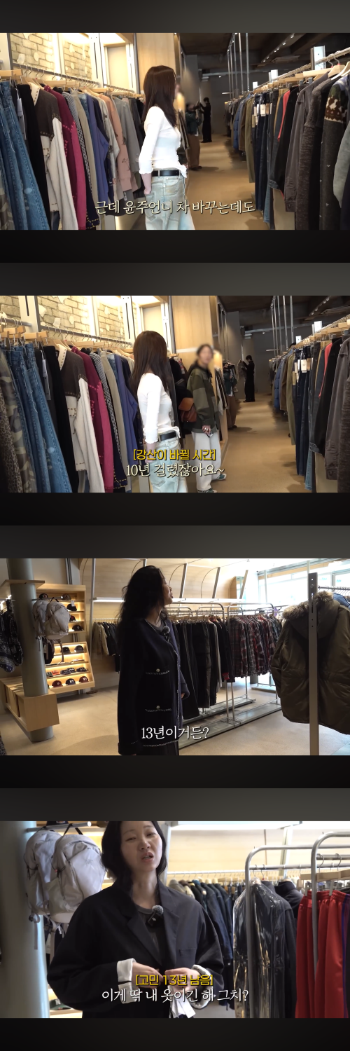 장윤주는 여러 옷을 입어보며 구매를 고민했지만, 쉽게 결정을 내리지 못하는 모습을 보였다. 이를 지켜보던 전종서는 자연스럽게 조언을 건넸다.