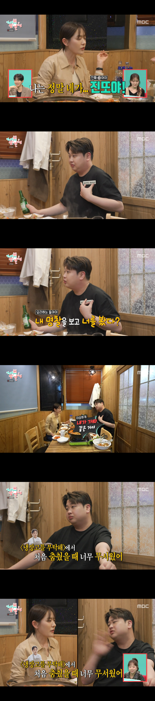 이어 그는 “<냉장고를 부탁해>에서 처음 춤췄을 때 사실 너무 무서웠다”고 털어놨고, 박은영은 “사람들이 다 나 접신한 줄 알았대”라고 받아쳐 웃음을 자아냈다.