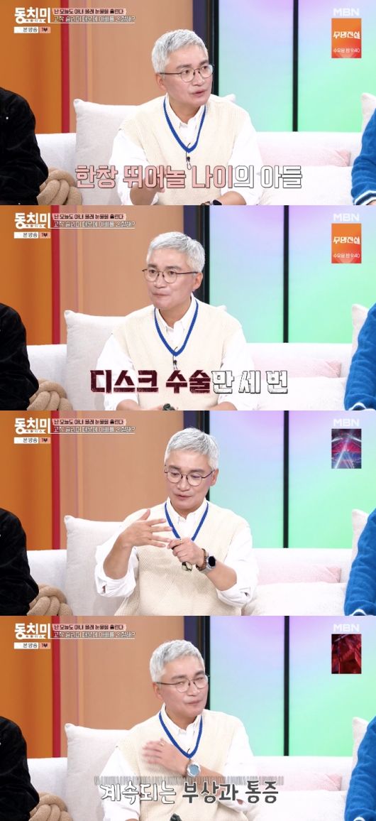 이어 “정말 많이 다쳤다. 디스크 수술만 세 번을 했고 손가락도 기형이 됐다. 어깨 수술도 해야 하고 백내장도 왔다. 종합 병원이다. 아이가 12살이다. 놀아줘야 하는데 못 놀아준다. 아프다. 미치겠는 것이다. 힘들더라”라며 아들을 향한 미안한 마음을 전했다.