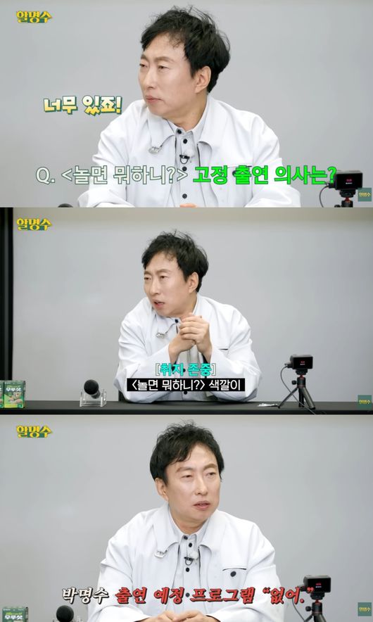 이 가운데 박명수에게 MBC 예능 프로그램 '놀면 뭐하니?' 고정 합류의 의사를 묻는 질문이 등장했다. 박명수가 과거 MBC 예능 '무한도전'에서 크게 활약했고, '무한도전'의 후신이 '놀면 뭐하니?'처럼 여겨지기 때문. 실제 박명수는 최근 '놀면 뭐하니?'에 게스트로도 출연한 바 있다.