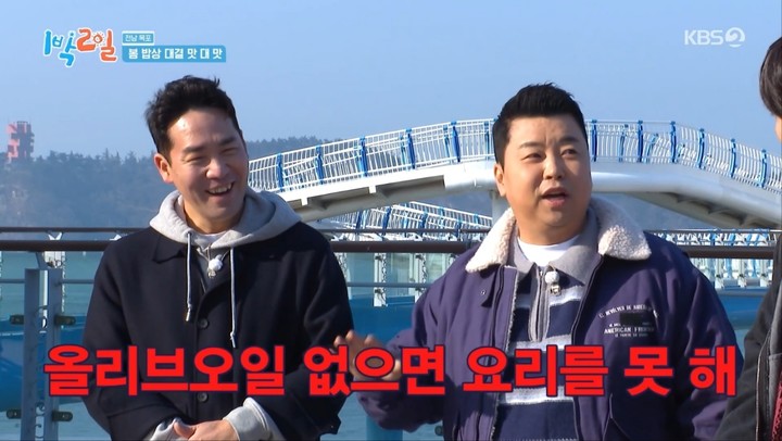 29일 방송된 KBS 2TV 예능프로그램 '1박 2일 시즌4'에서는 '봄 밥상 대결 맛 대 맛'을 콘셉트로 셰프 샘킴과 정호영이 게스트로 출연했다. 미식 여행이라는 테마에 맞춰 전문 셰프들이 합류하면서 요리 대결 구도가 형성됐다.