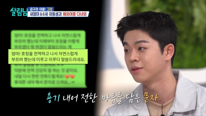 특히 눈길을 끈 것은 새어머니에 대한 호칭 변화였다. 그리는 "전역하는 날부터 '엄마'라는 호칭을 부르기 시작했다"고 밝혔다. 그는 "호칭을 바꾸기가 쉽지 않아서 그전까지는 '누나'라고 불렀다. 미루고 미루다가 '엄마라고 불렀어야 했는데 너무 늦어서 죄송하다'고 문자를 보냈다"고 털어놨다.