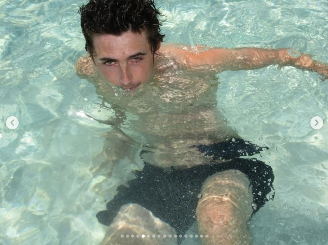 샬라메는 하얀 모래 위를 달리고 바다에 몸을 맡기며 즐겁게 시간을 보내고 있었다. 음악에 맞춰 춤을 추는가 하면, 지인과 함께 찍은 사진도 공개했다. 선베드에 누워 여유로운 시간을 즐기면서, 또 장난스러운 표정을 짓기도 했다.