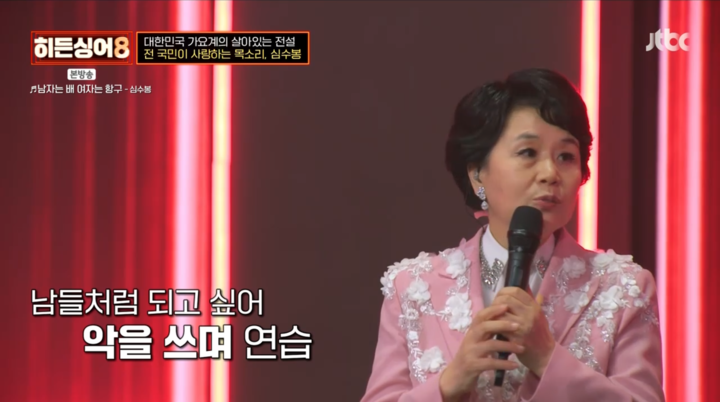 독보적인 음색의 소유자인 심수봉은 자신의 목소리에 얽힌 비하인드도 공개했다. 그는 "예전에는 내 목소리가 마음에 들지 않아 매일 소리를 지르고 악을 쓴 적도 있었다"며 "나중에야 코 옆의 뼈가 비어있어 특유의 비성이 나온다는 사실을 알게 됐다"고 고백해 놀라움을 안겼다.