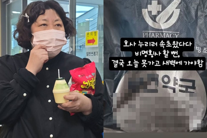 신기루는 지난달 31일 개인 계정을 통해 "호사 누리러 속초 왔다가 비명횡사할 뻔했다"며 약 봉투가 담긴 사진을 업로드했다.