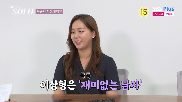 과거 항공사에서 객실 승무원을 했던 옥순은 경제학을 공부하던 중에 적성을 찾아 도전하게 됐다고 한다. 직업 덕분인지 사전 인터뷰에서도 시원스럽게 웃으며 "제가 재미가 있고 시끄러우니 이상형은 재미없는 남자"라며 "화만 안 나게 하면 생각보다 고분고분한 여자"라고 밝혔다.