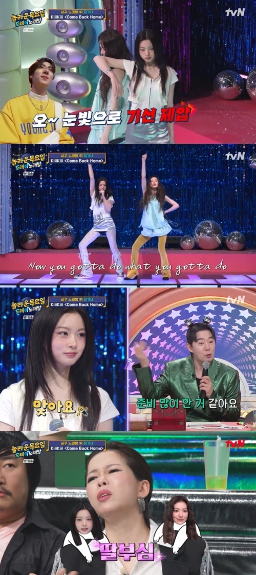 2일 오후 방송된 tvN 예능 프로그램 '놀라운 목요일'에는 걸그룹 키키 멤버 키야, 수이가 출연한 가운데 선배 그룹 2NE1의 '컴백홈'(Come Back Home)을 따라잡아 놀라움을 안겼다.