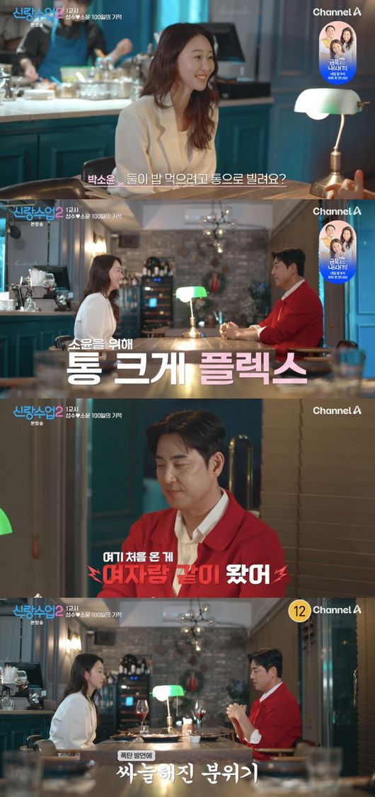 2일 방송된 채널A 예능 ‘신랑수업2’에서는 김성수가 박소윤과 100일 기념 데이트를 하는 모습이 그려졌다.