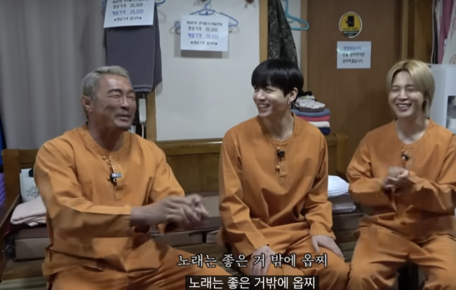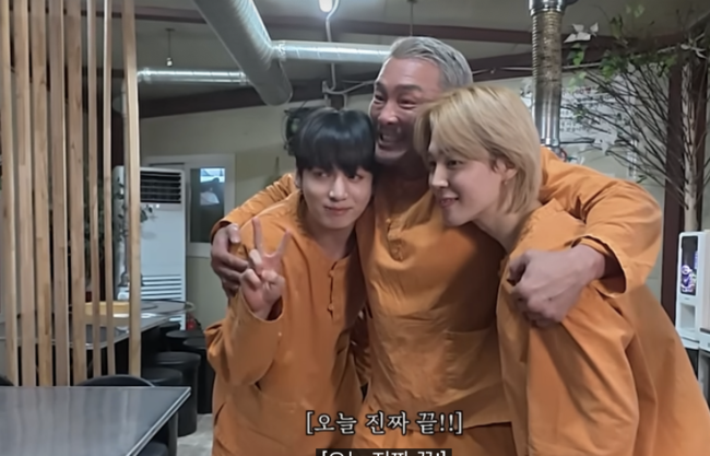 이날 정국과 지민을 만난 추성훈. 믿기지 않는 쓰리샷에 추성훈은 “우리 BTS다”라며 뿌듯, 찜질방에 도착했다.먼저 탈의하러 간 세 사람. “우리 같이 갈아입는 거냐”는 말에 추성훈은 “사나이다”고 외쳤다.