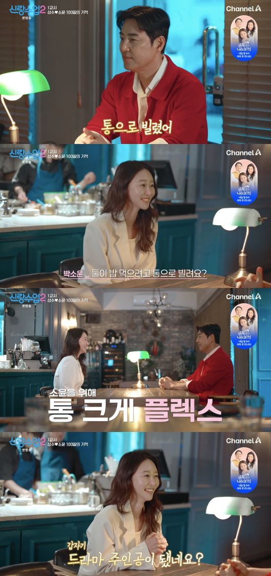 박소윤이 “둘이 밥 먹으려고 통으로 빌리냐”고 믿지 못하자 그는 “드라마 안 봤냐. 정말로. 사실 메뉴도 고를 필요 없다”고 너스레를 떨었다. 이에 박소윤은 “드라마 주인공이 된 기분”이라고 웃었다.