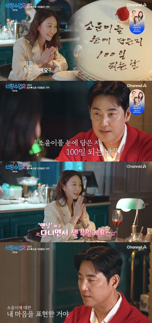 2일 방송된 채널A 예능 ‘신랑수업2’에서는 김성수가 100일 기념을 맞아 박소윤을 위해 깜짝 이벤트를 준비하는 모습이 그려졌다.