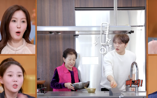 한편, 김재중은 “날계란이 절대 안 깨져 운동 선수도 못 깬다”며 “만약 깨지면 장가간다 안 깨지면 ..”이라 하자 모친은 “연기해라”고 했다. 이어 날개란을 자기도 모르게 깨버린 김재중은 “어차피 안 깨지니 한 건데 박살이 났다”며 당황, 모친은 “언제가나 했는데 분명히 장가간다고 했다”고 했고 김재중은 “이거 운동 선수도 못 깨는 건데”라며 자업자득된 상황에 당황했다.