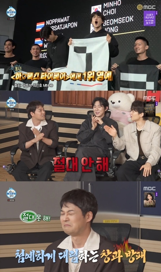 민호는 완강한 전현무에게 "연령대별로 포디움이 있어서 가능성 있다, 완주만 해도!"라고 설득에 나섰지만, 전현무가 끝까지 거부하는 모습으로 재미를 더했다.