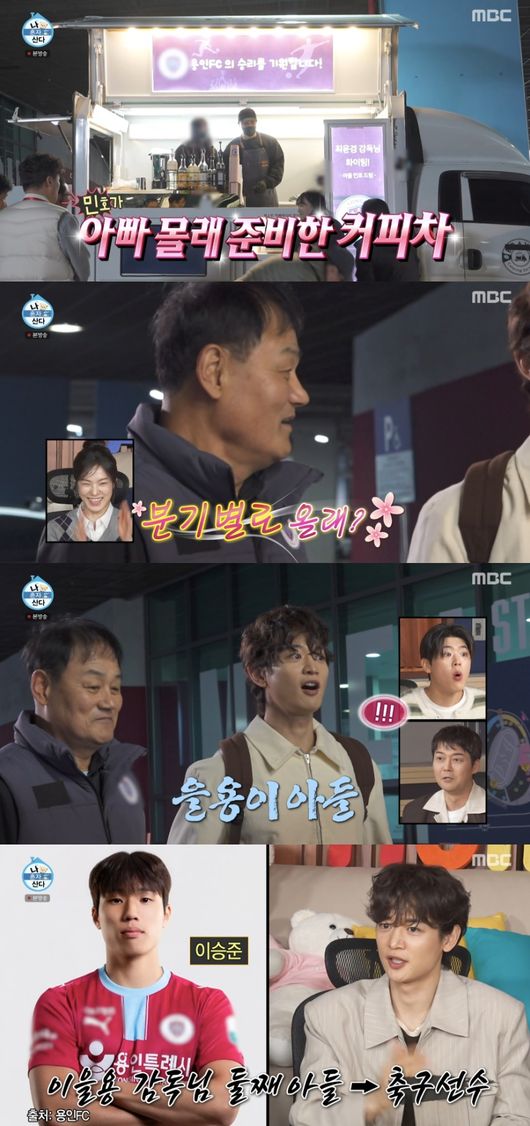 이날 민호는 용인FC에서 축구 감독으로 활동 중인 아버지를 응원하기 위해 커피차를 선물했다. 이에 아버지는 선수들에 “커피 한 잔씩 하고 가라”며 흐뭇한 미소를 지어 보였다.