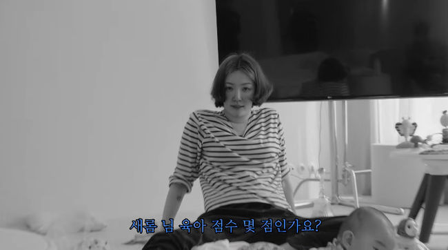 친구는 "새롬님 육아 점수 몇점이냐. 10점 만점에"라고 묻자 "10점"이라고 답했다. 김새롬은 "거짓말 하지마"라고 놀랐고, 친구는 "너무 잘한다. 초반이랑 좀 텐션이 떨어지긴 하는데 그건 나이 감안해서. 애도 너무 잘 보고 애기가 너무 좋아하지 않냐"라고 칭찬했다.