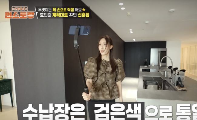 신혼집 내부도 세심하게 소개됐다. 곡선형 소파는 남편과 서로 마주볼 수 있도록 배치됐고, ‘애정 공간’으로 꼽은 술 창고도 공개됐다. 효민은 “연애할 때는 함께 자주 마셨지만 요즘은 바쁘다는 핑계로 잘 못 마신다”고 털어놨다.