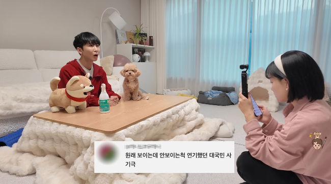 이날 김한솔은 반려견 토리와 함께 악플 읽기 콘텐츠를 촬영했다. 그는 가장 먼저 "눈 보이면서 안보이는 척 작작해라"라는 악플에 "토리가 태어나기 전부터 계속 이러더라"라고 답답해 했다.