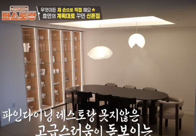 이 가운데 방송에서는 효민의 신혼집이 공개돼 시선을 모았다. 높은 층고와 탁 트인 한강 뷰를 자랑하는 집은 갤러리를 연상케 하는 인테리어로 감탄을 자아냈다. 개방형 테라스, 불멍이 가능한 난로까지 갖춰진 공간이 눈길을 끌었다.
