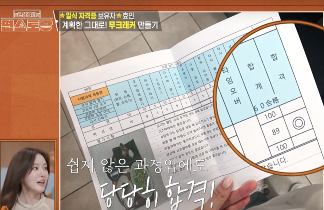 이어 전용 요리 칼까지 공개, 예사롭지 않은 칼질을 거침없이 뽐내며 무 돌려깎기에 성공했다. 글씨가 비칠정도로 습자지 간격으로 만든 것.효민은 “요리를 좋아해, 2018년 일식 조리사 자격증을 땄다”며 깜짝, 요리 황금손이었다.이연복 셰프도 “칼질 저 정도면 보통 실력아니다”고 말할 정도.