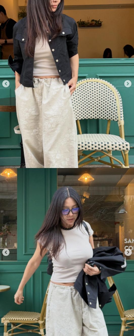 사진 속 황신혜는 조거 팬츠에 크롭 반팔티, 셔츠를 매치해 편안하면서도 스타일리시한 외출 룩을 완서했다. 거기에 뿔테 안경을 착용한 그는 딸 이진이와 못지 않은 분위기를 더했다.