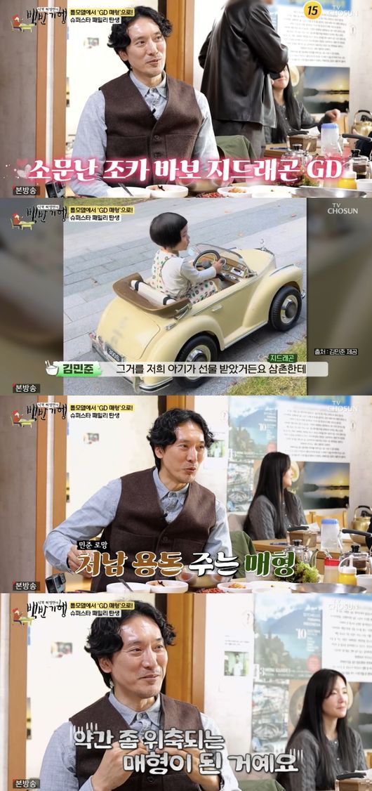 실제로 지드래곤은 소문난 조카 바보였다. 김민준은 “뮤직비디오 할 때 소품들이 많지 않나. 그거를저희 아기가 선물을 받았다. 삼촌한테. 그걸 올렸는데 뮤직비디오 자동차인지 사람들이 다 알더라. 기사에 나고 그랬다”라고 밝혔다.