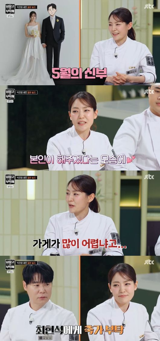 [OSEN=박하영 기자] ‘냉장고를 부탁해’ 박은영이 최현석이 축가를 하게 됐다고 고백했다.