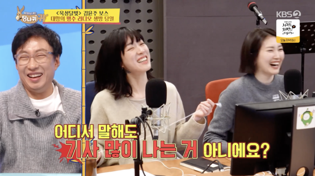 박명수는 곧바로 김윤주를 툭툭 치며 “애드리브가 안좋다. 기운이 없어”라고 걱정했고, 이어 “생방에서 이렇게 하면 안된다. ‘그러게요!’ 해야 된다”고 조언했다. 방송을 앞두고 박명수는 “실수를 많이 해줘야 한다. 요조가 만나는 남자가 있다든지, 숨겨놓은 애가 있다든지”라고 했고, 김윤주는 “그건 어디서 해도 기사 많이 나는 거 아니에요?”라고 꼬집었다.